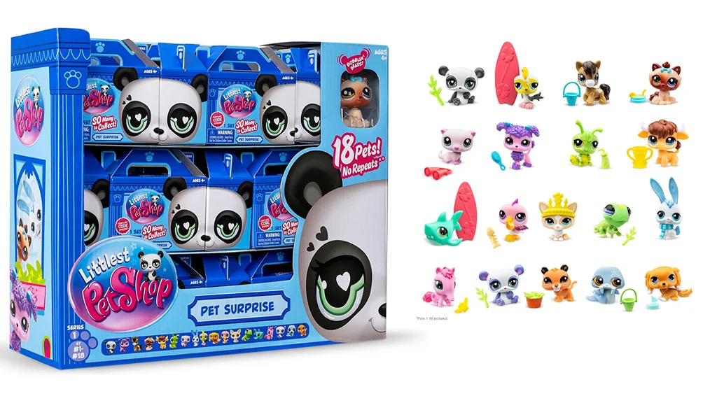 Překvapení Jednoduché, Oblíbené Dvojice a Oblíbené Trojice všechny obsahují roztomilé dvou palcové oblíbence, doplňky, sběratelské karty, sběratelské průvodce a virtuální kódy, takže děti se mohou připojit k virtuálnímu zážitku Littlest Pet Shop na Robloxu! Za přijatelnou cenu mohou děti hrát hodiny ať už s oblíbenci fyzicky, nebo virtuálně. Sbíráním různých témat a balíčků děti následují generace milovníků Littlest Pet Shop s kolekcí plnou oblíbenců, se kterými si budou hrát po léta a často se na ně budou vracet jako na oblíbenou dětskou hračku.