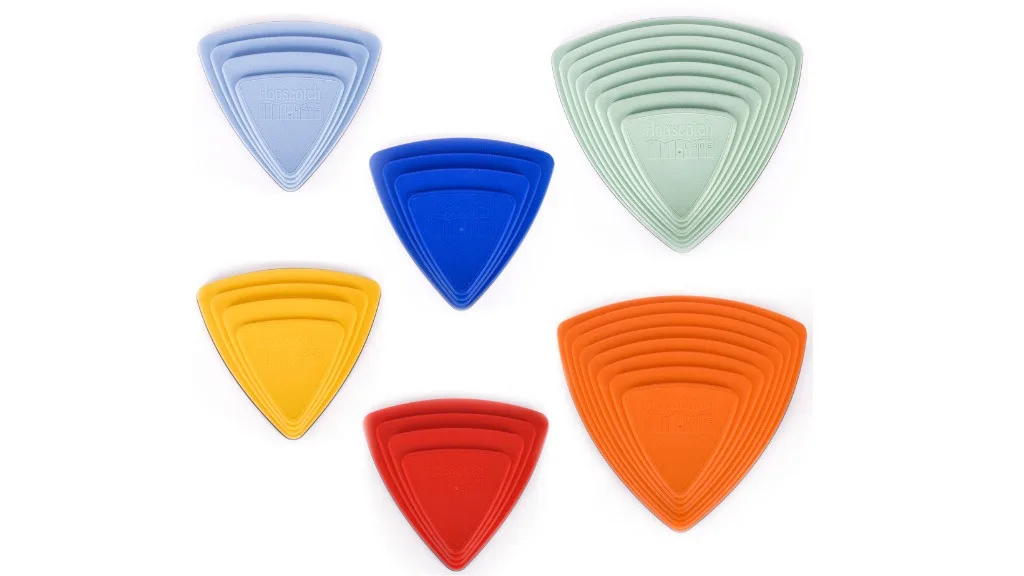 Malými kroky k velkým dobrodružstvím na Hopscotch Lane s kameny pro přeskakování! Pomozte dětem rozvíjet jejich smysl pro rovnováhu a dovednosti s šesti barevnými kameny v různých moderních barvách a velikostech – žlutá, červená, světle modrá, zelená, oranžová a tmavě modrá. Tyto univerzální kameny pro přeskakování jsou vyrobeny v různých velikostech, každá strana se liší sklonem a obtížností.