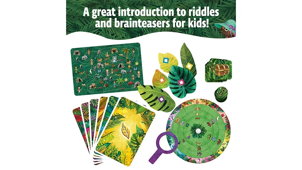 Hra má významné vývojové výhody, podporuje děti, aby spolupracovaly, řešily problémy a komunikovaly. Rodiče mohou rozšířit vzdělávací nástroje svých dětí tím, že je seznámí s unikátními džunglovými zvířaty, včetně tukanů, makaků, kakadu a mnoha dalších. Džungle plná hádanek nabízí zajímavé interaktivní typy hádanek, včetně bludišť, hledacích úkolů a rozpoznávání zvířat. Hra obsahuje v každém kole různé kombinace hádanek a pokladů, což zajišťuje skvělou opakovatelnost. Hádanky jsou zábavné a vhodné pro mladé dobrodruhy, navíc balení hry obsahuje tipy pro řešení hádanek.