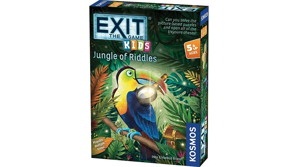 EXIT: Kids – Záhady džungle je hra pro děti, ve které musí řešit obrázkové hádanky, aby odemkli pokladnice strážené zvířaty. Hra obsahuje odpovědní list, 36 hádankových karet, devět pokladních žetonů, šest klíčových žetonů a sedm podivných předmětů. Hráči musí vždy vytáhnout jednu hádankovou kartu a postupně řešit hádanky. Pokud podle odpovědního listu jejich řešení správně, děti získají klíčový žeton, aby mohli otevřít pokladnici. Dobrodružství končí, když hráči vyřeší šest hádanek a získají své poklady.