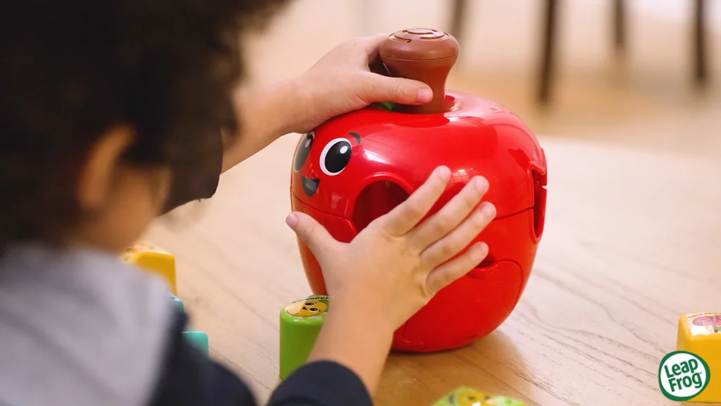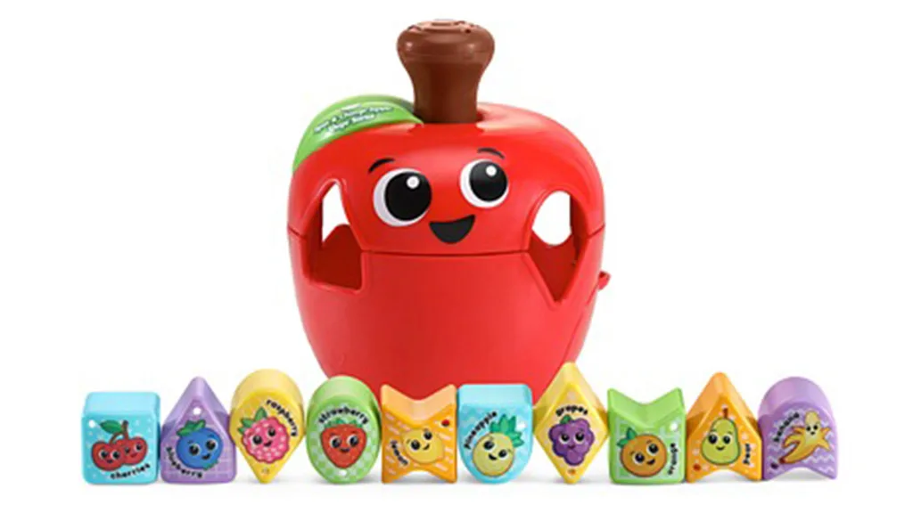 Tento okouzlující Uspořádávací Jablko je připraveno na hru! Malé děti mohou stisknout stopku jablka, aby sledovaly, jak se ovoce otáčí a vytváří čtyři jedinečné otvory pro uspořádání. Přátelské jablko obsahuje 10 barevných kostek s postavičkami zobrazujícími oblíbené ovoce dětí, jako jsou banány, pomeranče, hrušky, jahody a mnoho dalších. Malé děti mohou vytvářet nekonečnou zábavu jednoduchým otevřením úložného dvířka, aby vypustily všechny kostky.