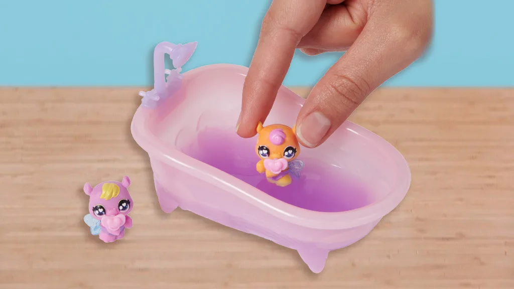 Odhalení překvapení trvá jen okamžik, ale je to kouzelný, nezapomenutelný zážitek, který si děti zamilují. Miniaturní hračky jsou velmi oblíbené a tento hračkářský set obsahuje spoustu roztomilých, malých kousků, se kterými si mohou děti hrát. Třpytivá voda je opravdu krásným doplňkem a protože vejce jsou růžová a modrá, děti mohou barvy ve vaně míchat, aby získaly fialovou! Zábavný bonus: Vana je dokonalé velikosti pro domeček pro panenky.Tato sada je plná