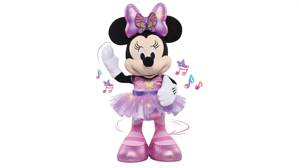 Louskáčka. Ale kromě toho, pokud si můžete dovolit 40dolarovou hru, je těžké najít nevýhody, které by vás nepotěšily.Děti mohou stisknout svítícího motýla na hrudi Minnie, čímž aktivují světla, otáčející se tutu, věty Minnie Mouse a píseň "Just Like a Butterfly". Pokud stisknou motýla na Minnieho mašli, mohou spustit světelnou show a další otáčení.