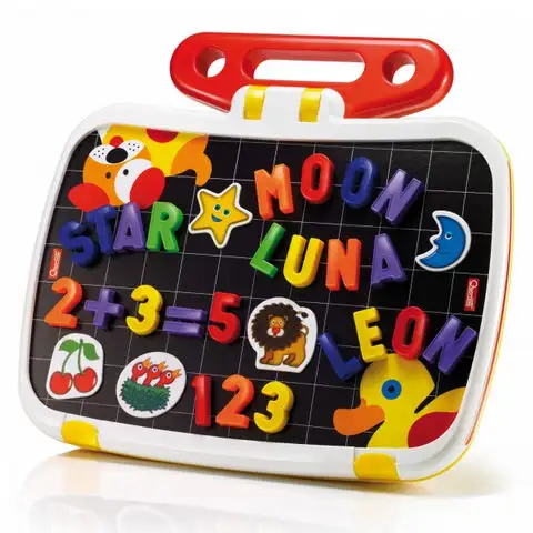 V této velmi praktické tašce s uchem najdeš dvě nesmírně vzrušující hry. Pokud chceš, můžeš si klidně užít svou lásku k kreslení, nic tě nezastaví v tom, abys na smazatelnou tabuli vytvořil krásné obrázky. K tomu ti poskytneme tři skvělé fixy. Pokud však máš chuť na trochu jinou hru, nemusíš se obávat, stačí otočit tabuli a okouzlující svět magnetů se před tebou otevře. Barevná písmena, čísla a figurky, které najdeš v tašce, můžeš všechny použít během hry. Příjemnou zábavu.