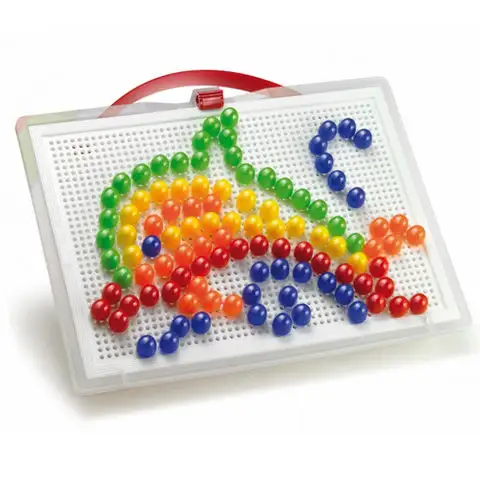 Tento balíček obsahující 150 barevných kolíčků zaručeně slibuje bezstarostnou zábavu. Na průhledné plastové návrhářské desce můžeš vytvořit vlastní nápady, ale pokud chceš, můžeš využít i přiložený album plné vzorů. Design kolíčků perfektně pasuje i do menších rukou, takže je snadno nasadíš na své místo. Když dokončíš obrázek, klidně ho ukáž všem, co jsi vytvořil, a dokonce pokud chceš, můžeš své dílo i pověsit na zeď. Rám je totiž vybaven praktickým uchem, díky kterému ho můžeš pověsit, ale také snadno přenášet.