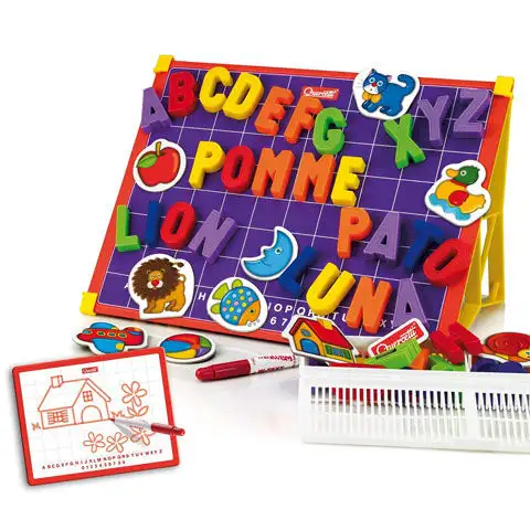 Quercetti: Magnetická tabule s velkými písmeny 48 ks + stojan hodnocení: