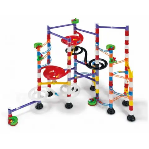 Vytvoř si vlastní vzrušující kuličkovou dráhu! Postav konstrukci viditelnou na krabici nebo se odvaž a experimentuj a vytvoř vlastní design! Zatáčky, rovné a křivé koleje, různé mosty a sloupy, trychtýře, to vše je k dispozici pro tvou tvorbu. Díky nim můžeš vytvořit nekonečné variace odvážných drah pro malé kuličky. Veselé barvy dílů a radost ze stavění zaručeně vykouzlí úsměv na tváři a slibují hodiny bezstarostné zábavy.