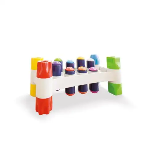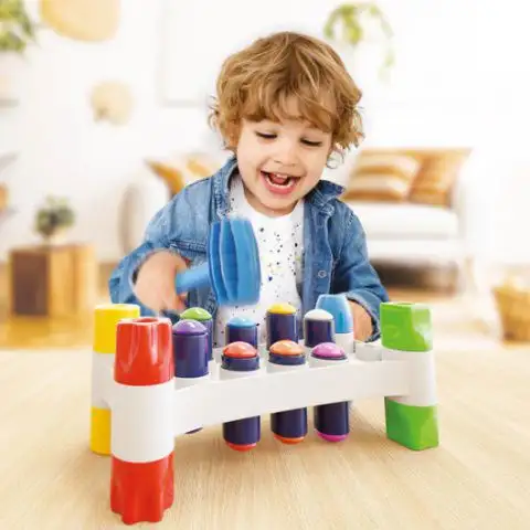 Děti již od 1,5 roku mohou používat tuto speciální hru s kladívkem, jejímž cílem je vyrazit hřebíky s různě barevnými horními částmi ze stojanu. Tato zábavná hra nejenže skvěle zabaví malé, ale také rozvíjí jejich manuální dovednosti, jemnou motoriku a prostorové vnímání. Balení obsahuje stojan, hřebíky a kladívko.