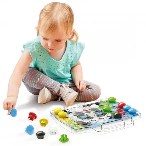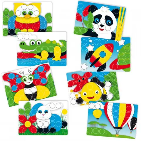 Sady pro rozvoj dovedností jsou nyní dostupné i pro nejmenší, protože neobsahují malé díly, malé knoflíky byly nahrazeny 32mm obřími nýty. Hra nabízí zábavu a také rozvíjí dovednosti, podporuje kreativitu, zručnost a koordinaci pohybů. Rozpoznejte, jakou barvu má pozadí a vyberte odpovídající knoflík a poté ho připevněte na své místo. Vyberte si z celkem osmi různých barevných a tvarových šablon pozadí a vytvořte je pomocí knoflíků.