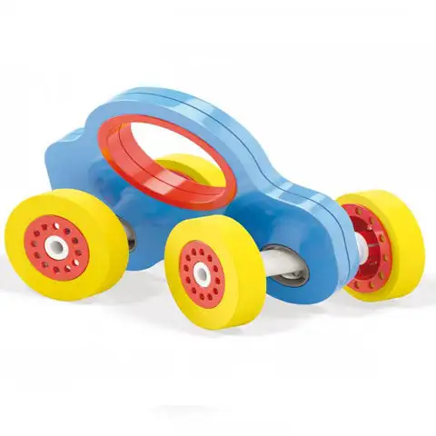 S tímto malým vozítkem jsou zaručeny zážitkové okamžiky, protože díky otočnému tělu s ním můžete cestovat nejen vpřed a vzad, ale i bočně. Kola jsou vyrobena z odnímatelné EVA pěnové gumy, která je pratelná a dobře se drží na jakémkoliv povrchu, ať už venku nebo uvnitř, nepoškozuje povrch, po kterém se pohybuje, a nevydává žádný zvuk. Každé vozítko Wroom je vybaveno na zadní straně oválnou rukojetí, která podporuje správný pohyb zápěstí a rozvoj koordinačních schopností.