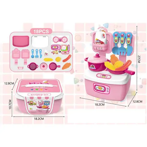 Růžová přenosná 18dílná sada hračkové kuchyněRůžová přenosná 18dílná sada hračkové kuchyně