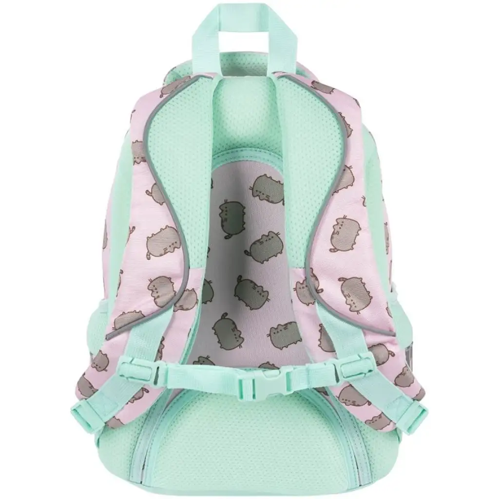 Růžový školní batoh Pusheen BPL58 ve velikosti 40x29x19 cm je perfektní volbou pro děti, které mají rády roztomilou kočičku Pusheen a veselé, hravé vzory. Harmonické barevné provedení batohu – pastelově růžová a mátově zelená – mu dodává půvabný vzhled, který si děti jistě zamilují. Postava Pusheen se objevuje na přední straně batohu jako roztomilá a stylová ozdoba, zatímco celý batoh zdobí drobné motivy Pusheen.