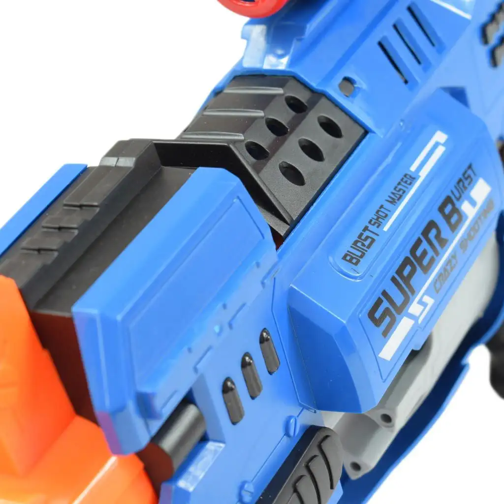 Velikost zbraně je 49x22 cm, což poskytuje dostatečně velký úchop a ovladatelnost pro vaše dítě. Tato velikost se přizpůsobuje ruce dítěte, takže zbraň je snadno ovladatelná a použitelná během hry. Zbraň má elektronickou konstrukci a pro její provoz jsou potřeba 3 baterie AA. Zbraň tak poskytuje nepřetržitou střelbu.