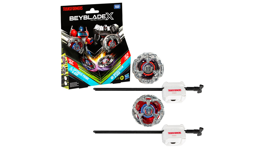 K dispozici jsou dvě sady multipacků — BEYBLADE x Transformers Optimus Primal 3-60F vs. Starscream 3-80N Multipack Set a BEYBLADE x Transformers Optimus Prime 4-60P vs. Megatron 4-80B Multipack Set — se kterými si děti mohou rozšířit své bitvy.