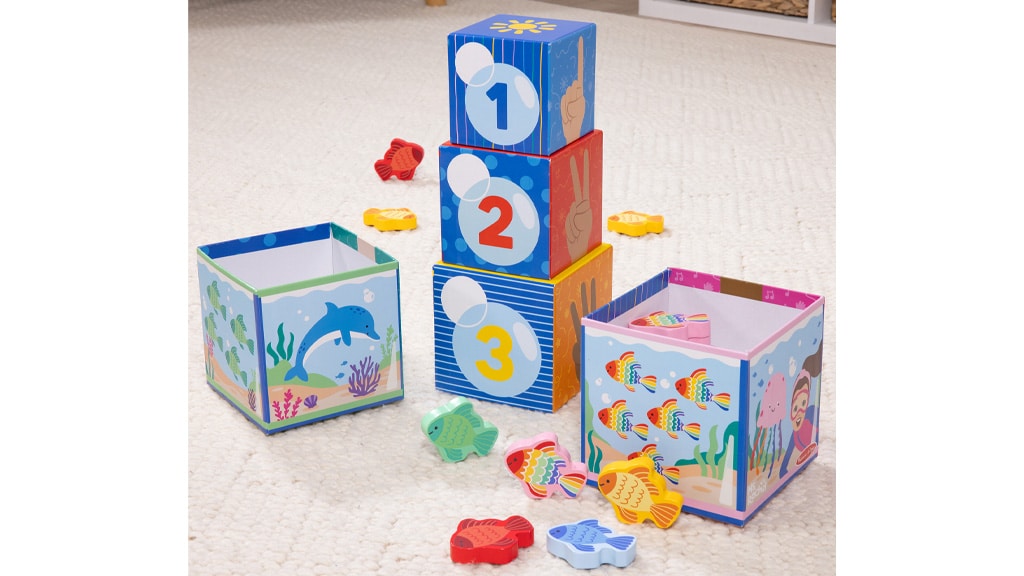 Sadu Melissa & Doug Ms. Rachel Třídicí a počítací stohovací kostky inspirovala jedna z populárních písní známé pedagožky Ms. Rachel. Tato hračka není jen zábavná, ale také rozvíjí logické myšlení dětí, jejich jemnou motoriku a počítací dovednosti. Barevné, do sebe zapadající kostky pomáhají rozpoznávat barvy, tvary a čísla, přičemž hravou formou podporují učení a kreativitu. Sada je ideální volbou pro každé malé dítě, které se rádo učí hrou.Malí mohou rozvíjet své jemné motorické dovednosti, zatímco se mohou zapojit do kreativní hry s Prvním učebním autobusem paní Rachel. Stačí jen zacvaknout figurku paní Rachel na sedadlo řidiče a ozvou se různé zvukové efekty, včetně oblíbené písničky „Kola autobusu“. Když je figurka Herbie umístěna na zadní sedadlo, děti mohou sledovat, jak se při pohybu autobusu pohybuje nahoru a dolů. Tlačením autobusu, stisknutím klaksonu a odpovídáním na otázky podporující učení mohou děti vymýšlet nové scény nebo si zahrát situace známé z videí paní Rachel. Tato hračka není jen zábavná, ale také pomáhá rozvíjet představivost a komunikační dovednosti, zatímco se děti aktivně učí a hrají si.Děti si mohou dále rozvíjet své dovednosti v třídění a skládání s pomocí sady Melissa & Doug Ms. Rachel Třídicí a počítací hnízdící kostky. Tato sada byla inspirována písní Ms. Rachel „Bubble, Bubble, Pop!“ a obsahuje pět hnízdících kostek z kartonu s akváriovým motivem. Na každé kostce je velké číslo, nakreslená ruka ukazující stejný počet, barevné rybičky a další podmořské scény. Součástí sady je také 15 dřevěných hracích rybiček. Nejmenší mohou prvky skládat, třídit a párovat, zatímco si hravou formou osvojují čísla, barvy a mořský svět. Tato hračka je nejen zábavná, ale rozvíjí také jemnou motoriku, logické myšlení a schopnost pozorování, zatímco děti s radostí objevují různé tvary a barvy. Ideální volba pro každé malé dítě, které se rádo učí hrou!