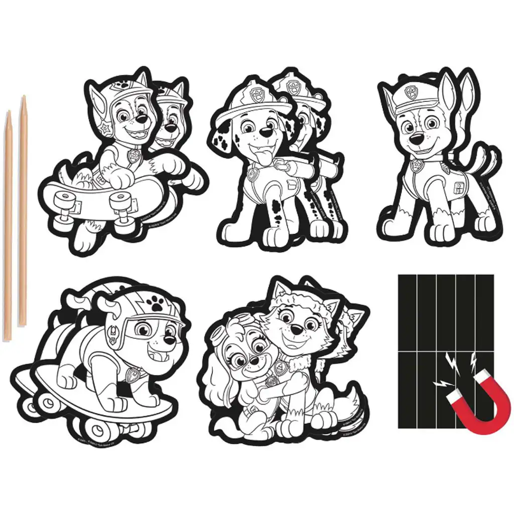 Sada 10 kreativních škrabacích magnetek na lednici s motivem Tlapkové patrolySada 10 kreativních škrabacích magnetek na lednici s motivem Tlapkové patroly