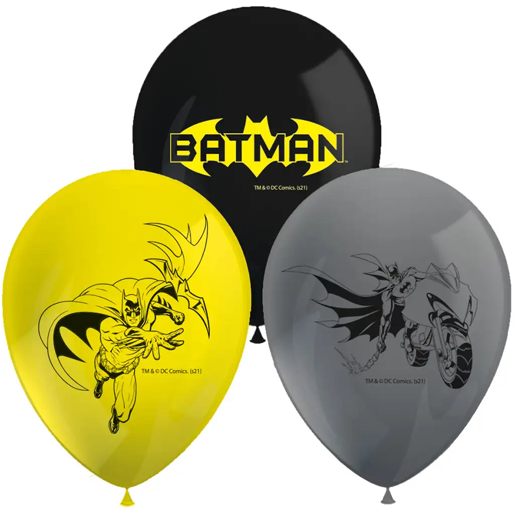 Proměňte narozeninovou oslavu v srdce Gotham City s těmito působivými balónky s motivem Batmana! Sada osmi balónků v intenzivních žlutých, černých a šedých barvách dodá dekoraci skutečný charakter, zatímco detailní Batmanovy grafiky – včetně klasického loga, motocyklové akce a dynamické superhrdinské pózy – zaručeně ohromí děti.