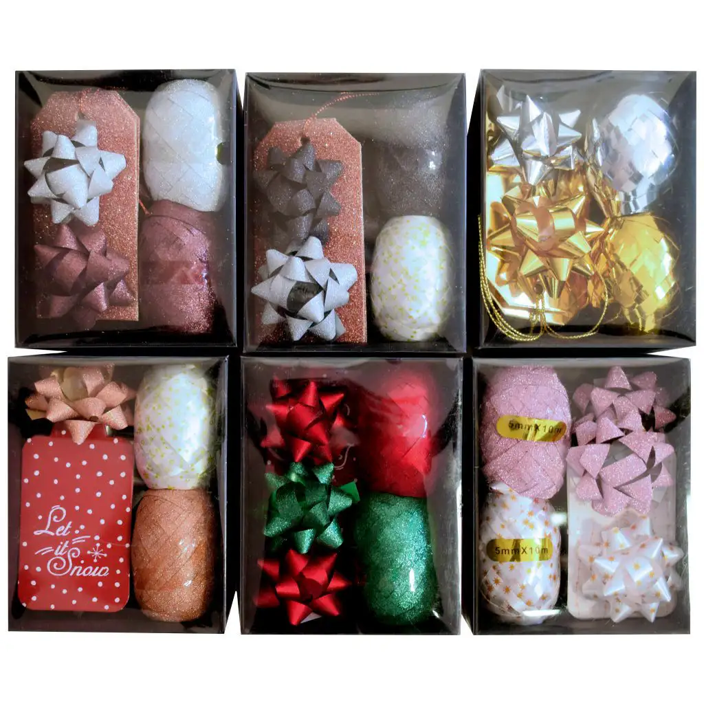 Vánoční balicí sada je dostupná ve šesti různých variantách, každá z nich září jedinečným stylem s třpytivým leskem. První varianta se prezentuje v černo-béžových třpytivých barvách, druhá se pyšní zeleno-červenou kombinací, zatímco třetí nabízí odstíny bílé a béžové. Kromě toho je mezi variantami možné najít bílou a zlatou, růžovou nebo hnědou barvu. Každá varianta dodává balení extra kouzlo díky třpytivým barvám nebo právě lesklému třpytu, přispívající k sváteční atmosféře.