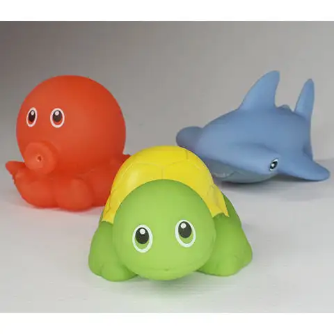 Sada koupacích hraček s postřikujícími zvířátky a sítí na lov žraloků.Sada koupacích hraček s postřikujícími zvířátky a sítí na lov žraloků.