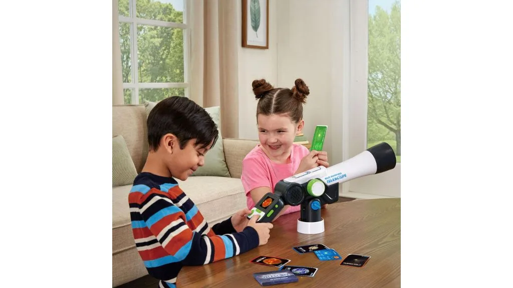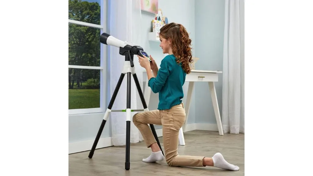 Děti mohou pomocí digitálního dalekohledu objevovat svět kolem sebe až se 110násobným zvětšením, prohlédnout si více než 100 NASA videí a obrázků a hrát si na 2,4palcové obrazovce.