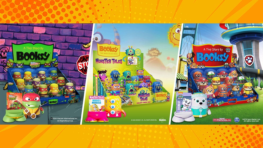 Booksy je nová série sběratelských mini knih, která kombinuje hru s imaginárními postavami s čtením a jedinečnými možnostmi vystavení. Postavičky Booksy jsou dostupné v několika variantách ve třech různých řadách: Monster Tales, což je originální dílo PMI Kids’ World; Tales of the Teenage Mutant Ninja Turtles, inspirované animovaným seriálem; a Tlapková patrola, inspirovaná ikonickými pejsky od Spin Master. Každá postavička přichází v průhledné kopuli. Jednoduché otočení a vytažení odhalí miniaturní knihu uvnitř.