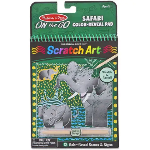 Výroba rytin není mezi nejjednodušeji realizovatelnými kreativními hrami doma, protože je to vážný úkol nanést na obrázky povrch, který lze později odškrábat. Tento skvělý sešit se spirálovou vazbou na téma safari a zážitkem z rytí určitě okouzlí děti. Díky dřevěné tužce, která je součástí sešitu, mohou děti snadno odstranit černou krycí vrstvu, a tak se před jejich očima mohou objevit celkem 12 různých safari scén.