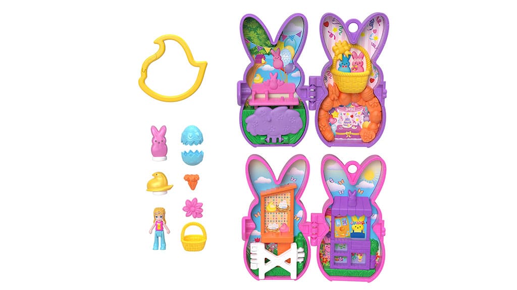 Každý balíček obsahuje dvě sady hraček, které vypadají jako malé, barevné figurky Peeps a otevírají se jako kompaktní make-up, odhalující svět Polly Pocket s tématem Peeps. Děti mohou najít panenku Polly Pocket, oblečení a další doplňky uvnitř fialových a růžových produktů. Tato kombinace je úžasná — děti si mohou užívat jarní zábavu a přidat do své sbírky Polly Pocket po zbytek roku (a i dále). I když vypadají dost dobře na to, aby je člověk chtěl sníst, tyto sady hraček nejsou jedlé.