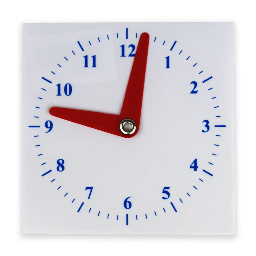 Hodiny jsou vyrobeny z pevného plastu, což zajišťuje jejich odolnost a dlouhou životnost, takže dobře snášejí každodenní používání. Rozměr 10x10 cm je ideální, protože je dostatečně velký na to, aby děti snadno viděly čísla a ručičky, a zároveň kompaktní, aby se pohodlně vešly do školní tašky nebo na stůl.