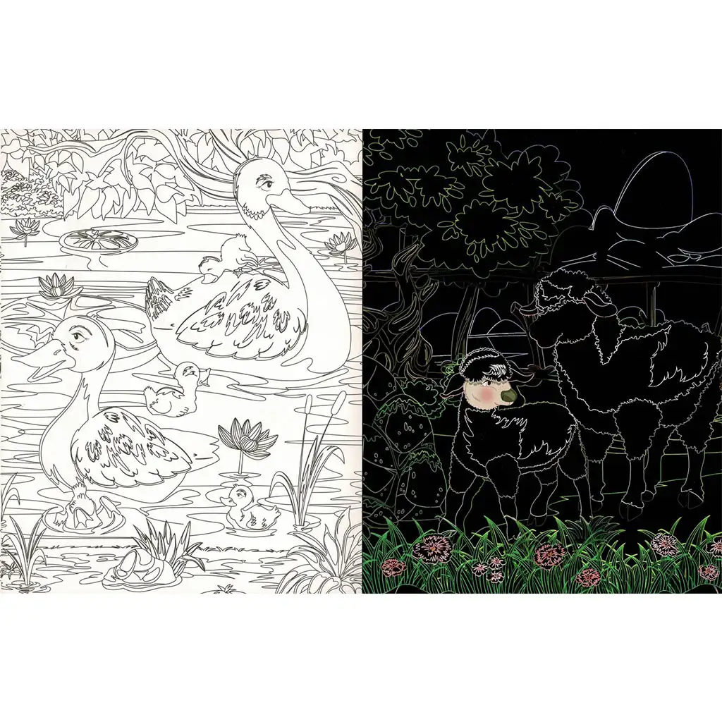 Skrývající se farmářská zvířata - Omalovánky s škrábacími a vybarvovacími stránkami