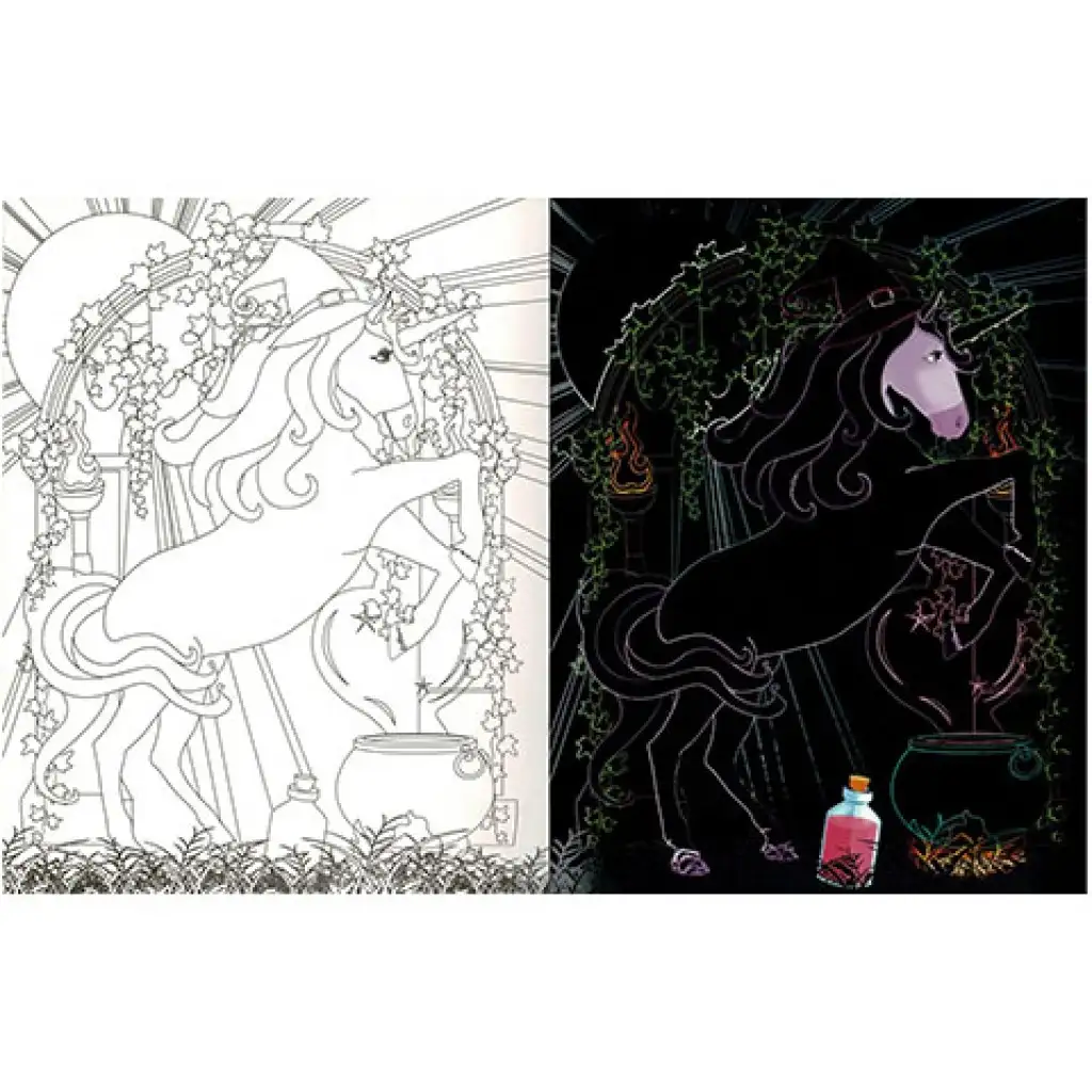 S touto speciální omalovánkou mohou děti objevovat úžasný svět jednorožců! Pomocí přiložené tyčinky stačí seškrábat černou vrstvu a okamžitě se objeví nádherný, barevný svět na stránkách! Kromě toho mohou děti na stránkách určených k vybarvování vytvořit svou vlastní verzi. Jakmile je dílo hotové, díky lepené vazbě lze stránku snadno a v dobrém stavu vyjmout, což je skvělý dárek pro přítele nebo ideální obrázek na stěnu pokoje.