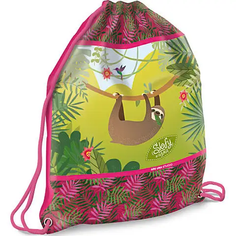 Sportovní taška s mimořádně barevným, dekorativním vzorem mohou děti nosit na rameni nebo na zádech, nic z ní během přepravy nevypadne. Slofy in the Jungle, taška na cvičení s lenochodem, je skutečně dekorativní doplněk, který budou rádi nosit malí i velcí. Sportovní taška vyrobená z vynikajícího, odolného materiálu jim bude dlouho sloužit ve škole.