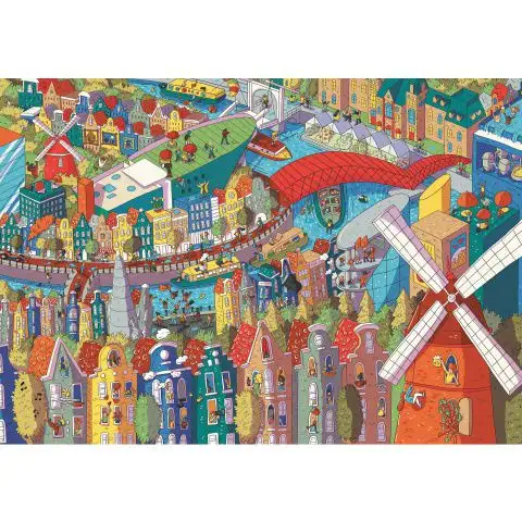 Série Sneaky Peekers je velmi atraktivní díl, který zobrazuje Amsterdam, velmi detailní a atraktivní grafikou. Puzzle Trefl UFT "Unlimited Fit Technology", neboli technologie s nekonečnými možnostmi kombinace, jsou speciální, protože různé sady mohou být kombinovány podle libosti, spojují se na okrajích. Puzzle je vyrobeno z biologicky rozložitelného, recyklovaného a recyklovatelného materiálu, takže výrobce bral v úvahu i ekologické chování při výrobě. Tlusté, silné kusy puzzle se dobře hodí, když jsou spojeny, nerozpadají se, což umožňuje pohyb větších bloků nebo dokonce celého puzzle, a vytváří pěkný, homogenní povrch hotového obrazu.