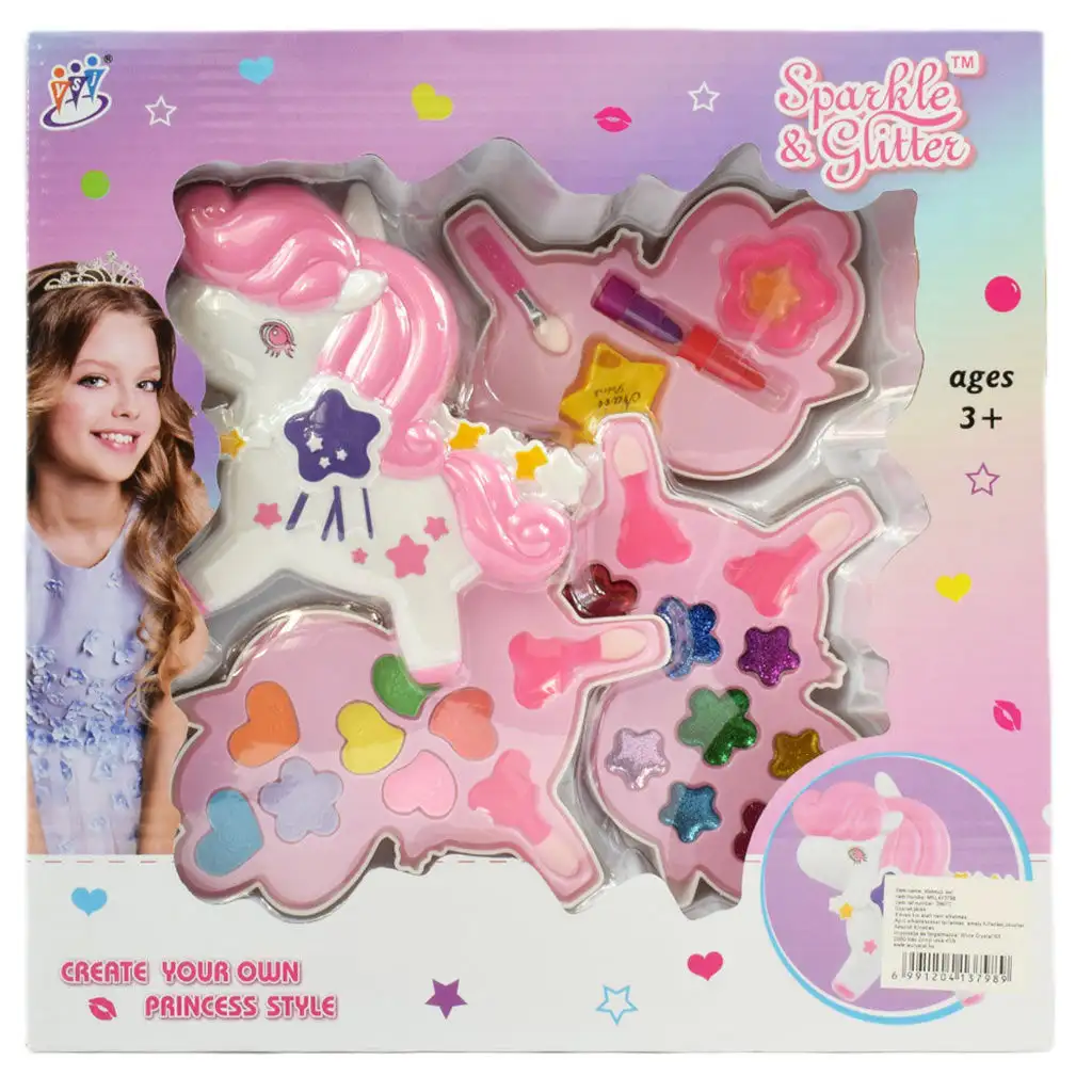 Líčení a kouzlo jednorožců jsou pro každou malou dívku přitažlivé, takže tento ohromující líčící set určitě zaznamená obrovský úspěch mezi malými, zejména díky třpytivým barvám. Sada je umístěna v kouzelném jednorožci tvarovaném úložném prostoru, jehož víko obsahuje tři vysouvací zásuvky. Tento speciální design umožňuje malým snadno přehledně vidět obsah zásuvek a najít všechny potřebné nástroje pro vytvoření nádherného líčení. Třpytivé barvy jsou zaručeně okouzlující a uchvátí děti.