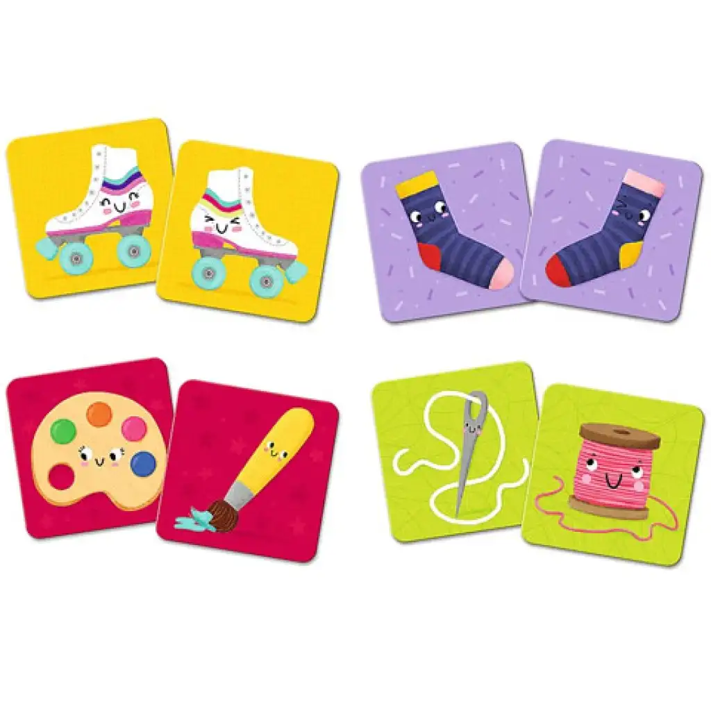 Tato paměťová hra není založena na shodných párech, ale na párování odpovídajících destiček, takže ořezávátko nemá za pár další ořezávátko, ale barevné tužky, stejně jako jehlu doplňuje nit, takže malí musí být ještě pozornější. Není třeba nic jiného než důkladně promíchat destičky obrázkem dolů, které jsou pěkně uspořádány na stole. Poté začínající hráč otočí dvě karty a všichni si zapamatují, co bylo na obrázku, než se karty otočí zpět. Poté je na řadě další hráč. Pokud hráč úspěšně najde pár obrázků, získá ho a může zkusit znovu. Vítězem se stává ten, kdo má na konci nejvíce párů ve své sbírce.