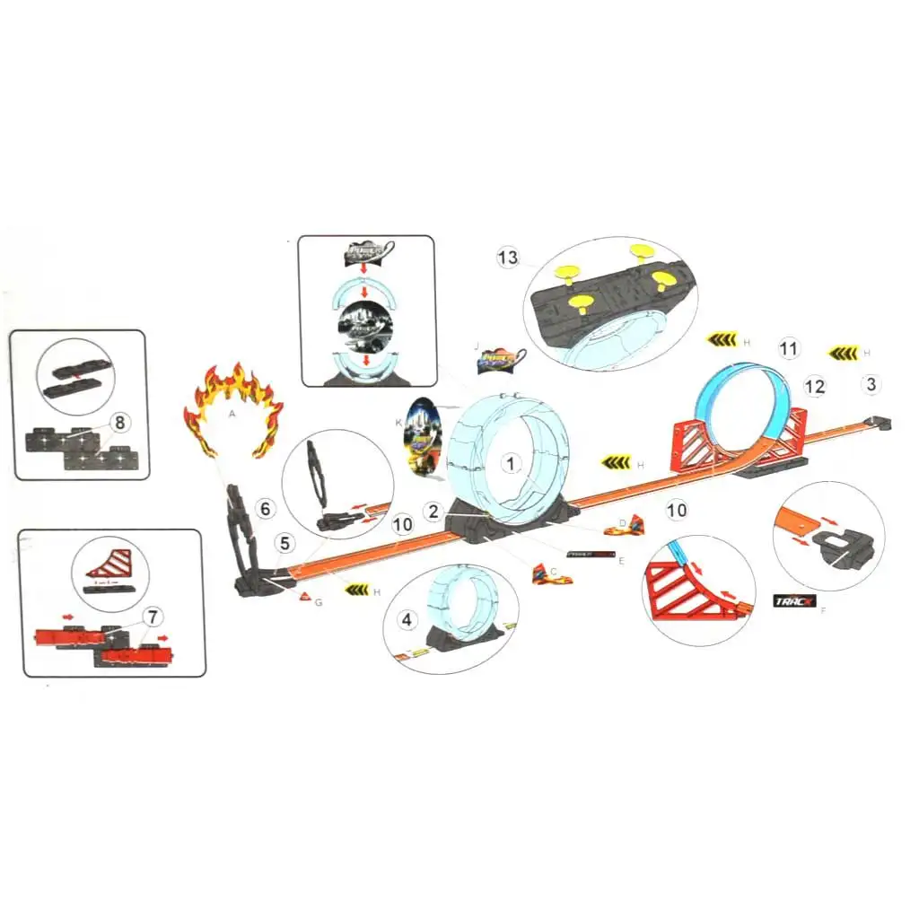 5. Snadno sestavitelné prvky dráhy: Sada obsahuje snadno sestavitelné prvky dráhy, se kterými můžete vytvořit vlastní dráhy.