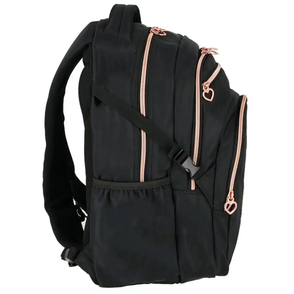 Hlavní přihrádka tašky je dostatečně prostorná, aby pohodlně pojala složky formátu A4, zatímco dvě zesílené vnitřní kapsy poskytují extra ochranu pro digitální zařízení. Přední kapsy jsou praktické pro uložení menších předmětů, jako jsou klíče, peněženka nebo mobilní telefon, a v designu je také samostatná kapsa na sluchátka. Vestavěné organizační přihrádky pomáhají udržovat školní doplňky v pořádku, takže vaše dítě vždy rychle najde, co hledá.