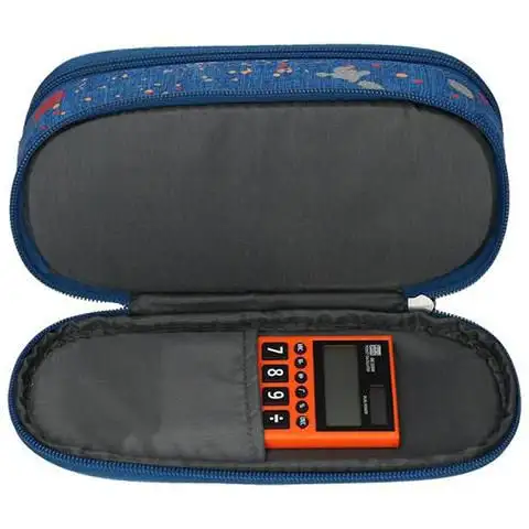 Oválný design je velmi praktický, protože vytváří ideální uspořádání uvnitř penálu. Spodní část má prostorný prostor, takže se v něm pohodlně vejde všechno potřebné psací potřeby, jako je pravítko, kružítko, guma nebo ořezávátko. V horní části jsou gumové smyčky, takže nejčastěji používané psací potřeby, jako jsou tužky nebo pera, zůstávají snadno dostupné.