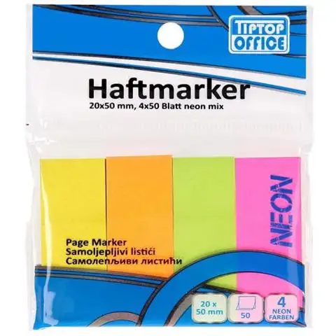 Tyto malé obdélníkové značky lze skvěle použít k označení míst určených k podpisu, stejně tak jako k označení důležitějších částí v dokumentu, a dokonce je můžeme opatřit několika slovy poznámky, pokud použití různých barev nedostatečně uspořádá věci. Balení obsahuje čtyři různé barvy bloků, každý blok se skládá z padesáti 20x50mm listů, které můžeme nalepit na jakýkoli hladký a čistý povrch a poté je bez stopy odstranit.