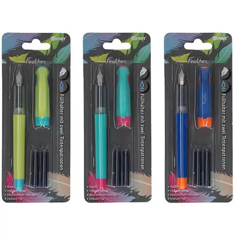 Spirit: Plnicí pero s modrým inkoustem, 2 náplněmi v různých barvách, 1 kus.Spirit: Plnicí pero s modrým inkoustem, 2 náplněmi v různých barvách, 1 kus.