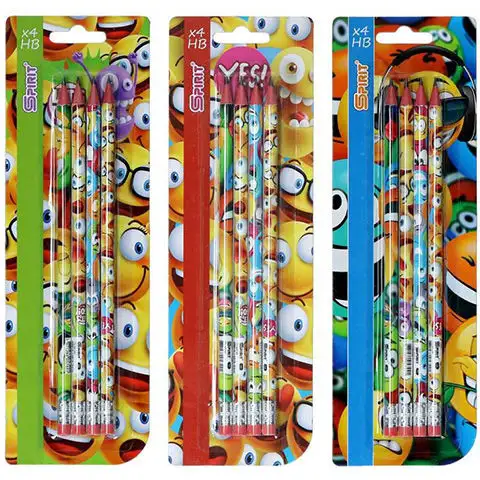 Spirit: Šťastný grafitový tužka s gumou v sadě 4 kusů v různých variantáchSpirit: Šťastný grafitový tužka s gumou v sadě 4 kusů v různých variantách