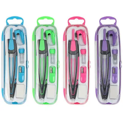 Kružítka jsou nezbytnou součástí matematických hodin, takže tato sada, která obsahuje vše, co může být potřeba při použití kružítka, může být velkou pomocí. V sadě najdete kružítko s výjimečným vzhledem, které je doplněno barevnými prvky, takže vypadá velmi dobře. V krabičce na kružítko má vše své místo, například hrot kružítka, ořezávátko na hrot kružítka, guma a adaptér, který umožňuje použití tužky pro označení.