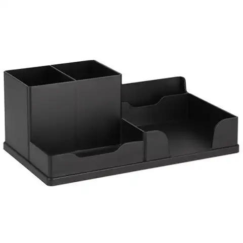 Uspořádané pracovní prostředí může výrazně přispět k efektivní práci a tento moderně navržený organizér může být velkou pomocí. Tento organizér vyrobený z černého plastu je zároveň elegantní a velmi praktický, protože v pěti různých přihrádkách najdeme místo pro vše. Vyšší stěny přihrádek jsou ideální pro ukládání per a tužek, zatímco menší prostory mohou obsahovat bloky, nůžky, ořezávátka nebo dokonce malou hromádku kancelářských spon.