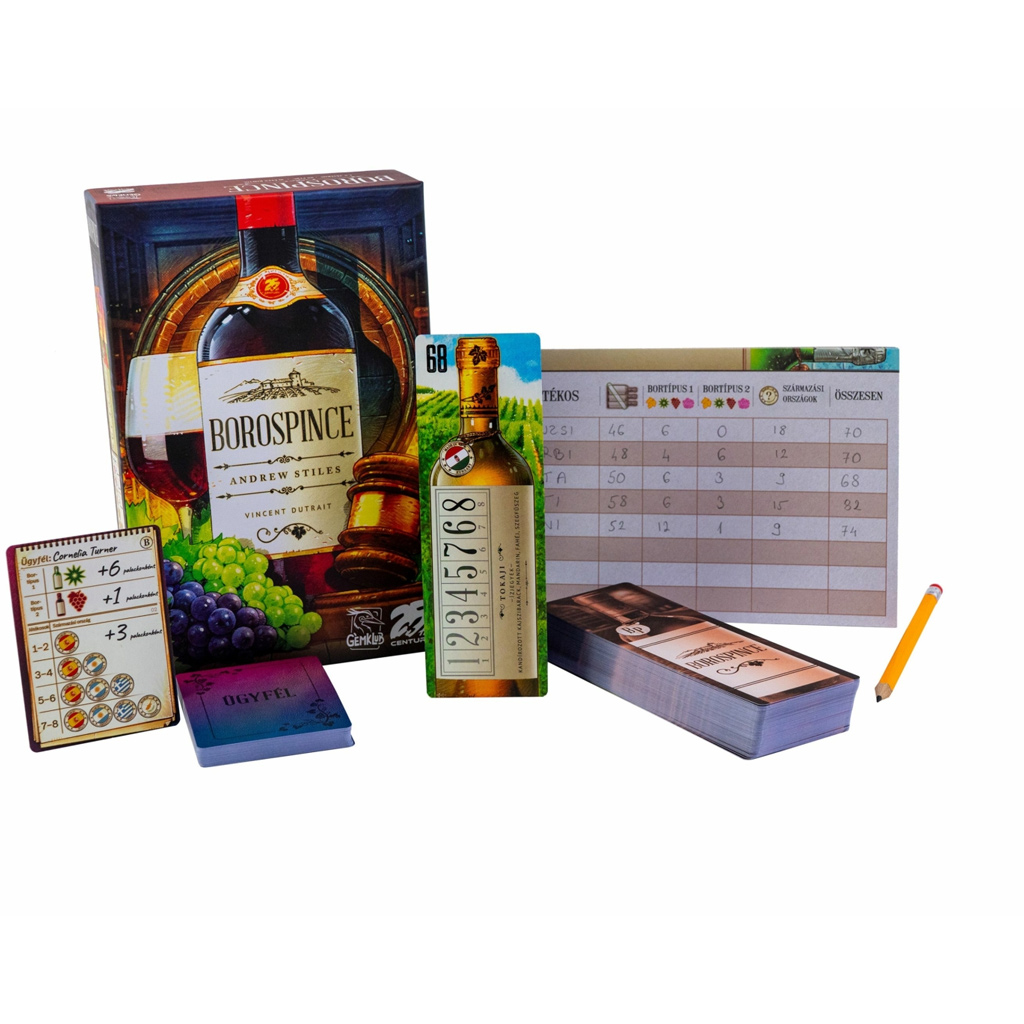 Společenská hra Borospince je strategická karetní hra s výjimečnou atmosférou, ve které můžete společně se svým dítětem vybudovat vlastní vinný sklep – ale záleží na tom, v jakém pořadí láhve umístíte na svá místa! Krásné ilustrace a jedinečné téma vás okamžitě vtáhnou, zatímco hra neustále klade před hráče rozhodnutí. Musíte současně sledovat aukce, tahy soupeřů a požadavky zákazníků, takže každá partie zůstává napínavá a různorodá.