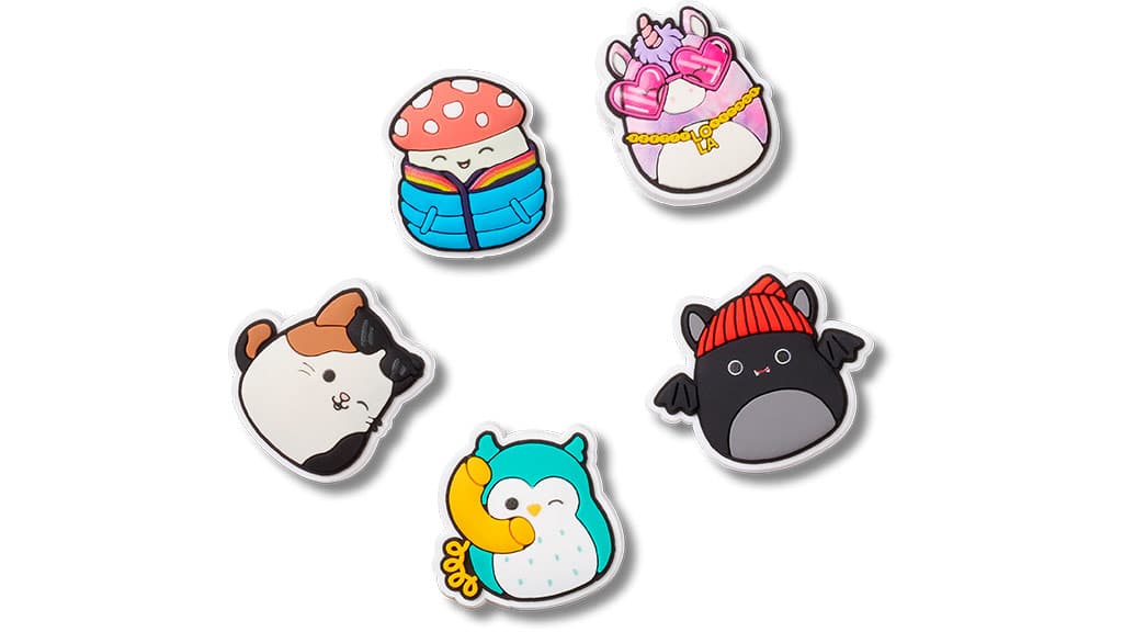 Samozřejmě, že jakákoli kolekce Crocs by byla neúplná bez samostatné kolekce Jibbitz. Kolekce Squishmallows x Crocs obsahuje jednotlivě prodávané varianty ve formě Jibbitz Cam, Kočka, Joelle a Patty, stejně jako balení po 5 kusech, které obsahuje Squishmallows s veselými doplňky!