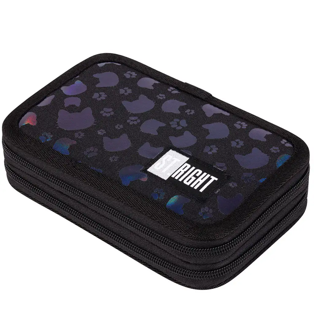 St.Right Black Cats dvoupatrový plně vybavený penál je ideální volbou pro každého malého školáka, který miluje kočky! Tento penál s jedinečným černým základem a kočičím vzorem a praktickým designem se zaručeně stane oblíbeným mezi dětmi. Penál není jen stylový, ale také velmi praktický, což pomáhá při každodenní školní přípravě.