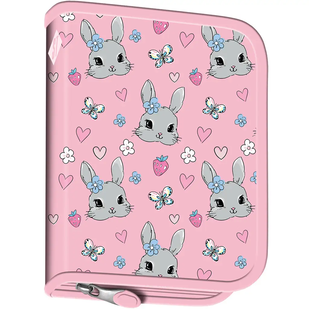 Odolné materiály a kvalitní zip zajišťují dlouhou životnost, díky čemuž bude penál spolehlivým společníkem během školních let. Vnitřní uspořádání s praktickými gumičkami bezpečně drží psací potřeby na svém místě a není třeba se obávat nepořádku. Díky kompaktním rozměrům (20,5x14x3,5 cm) se snadno vejde do školní tašky a nezabere mnoho místa. Milý vzor s králíčkem zaručí veselou náladu každý den při školních dobrodružstvích.
