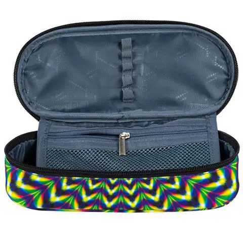 Stačí jeden pohled na tento penál a hned pochopíme, proč dostal název Hypnóza, protože jeho zvláštní vzor dokáže trochu oklamat každého pohledem. Díky oválnému tvaru se do něj vejde spousta psacích potřeb, z nichž ty nejčastěji používané lze dokonce připevnit na víko, takže budou vždy po ruce, když budou potřeba. Do síťované kapsy mohou jít drobnosti, aby je nebylo třeba vyndávat ze dna penálu.