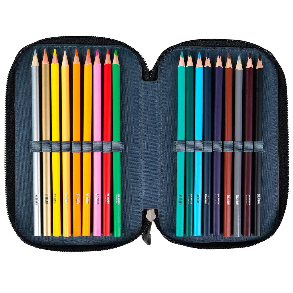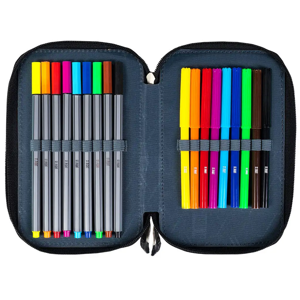 Penál má tři samostatné komory, každá uzavíratelná zipem, takže všechny školní potřeby můžete bezpečně a přehledně uložit. Ergonomické úchyty zipů jsou snadno ovladatelné i pro nejmenší ruce. V komorách se nachází mnoho upevňovacích a oddělovacích prvků, které pomáhají udržovat tužky, pera a další potřeby přehledně uspořádané, takže vždy snadno najdete, co potřebujete.