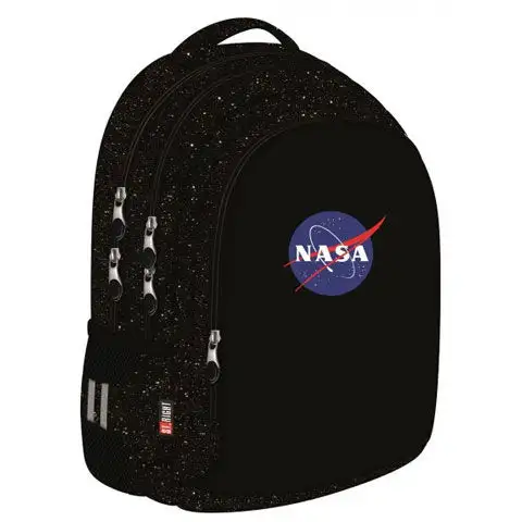 Přitažlivost batohu NASA spočívá právě v jeho jednoduchosti, kdy černou základní barvu zdobí pouze několik bílých hvězd a logo NASA, čímž batohu propůjčuje vzhled noční oblohy, což jistě zaujme malé kluky. Díky polstrované konstrukci zadní části a nastavitelným a širokým ramenním popruhům je batoh pohodlný pro děti. Školní batoh vyrobený z kvalitního, voděodolného materiálu je praktický i pro ukládání, protože má několik velkých přihrádek a zipové kapsy pro knihy a sešity, stejně jako gumovou boční kapsu pro láhev. Nakonec, ale neméně důležité, je velmi užitečná i zpevněná spodní část a reflexní vzory pro bezpečnost.
