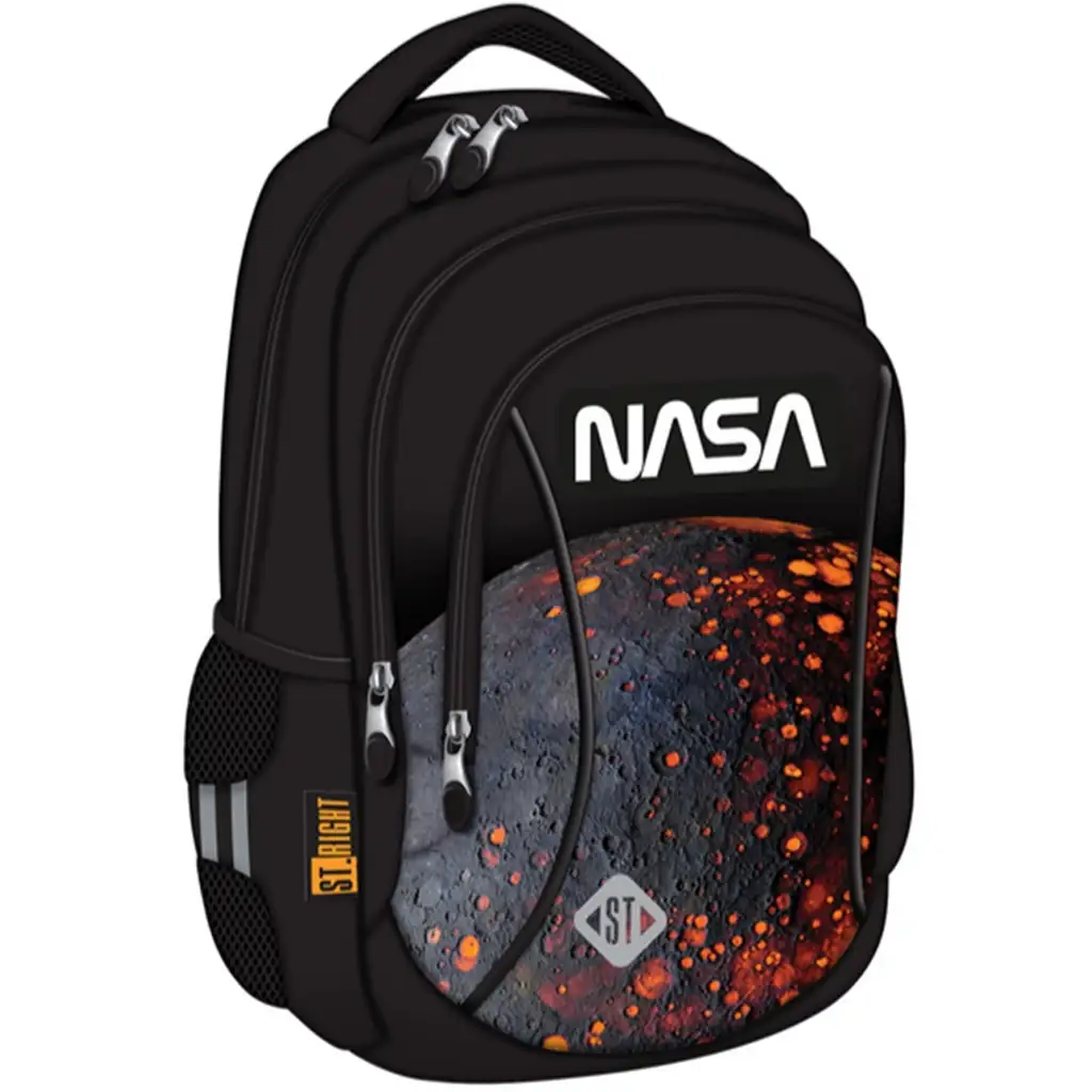 Školní batoh St.Right Red Planet NASA o rozměrech 39x27x17 cm je ideální volbou pro každého studenta, který je fanouškem vesmíru a má rád originální a výrazné doplňky. Základní černou barvu batohu zdobí působivá grafika rudé planety a velké bílé logo NASA, což z něj činí výjimečný kousek. Tento design osloví každé dítě, které je fascinováno tajemstvími vesmíru a zážitkem z objevování.